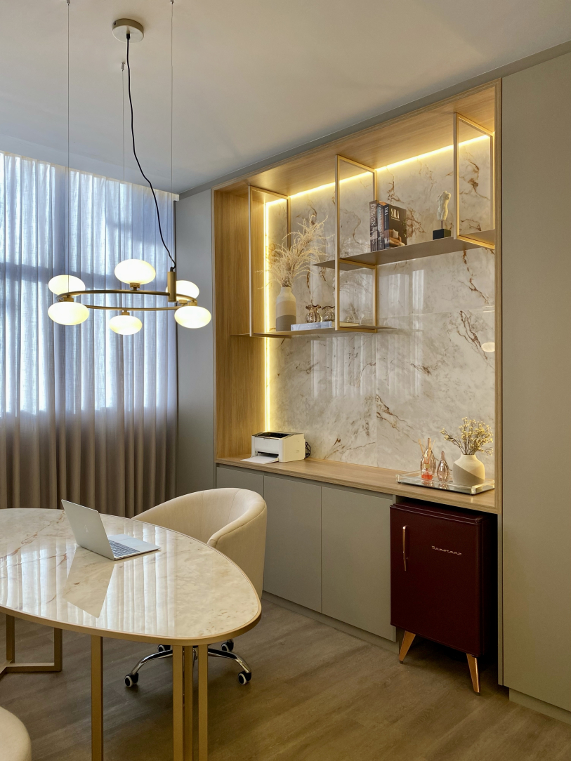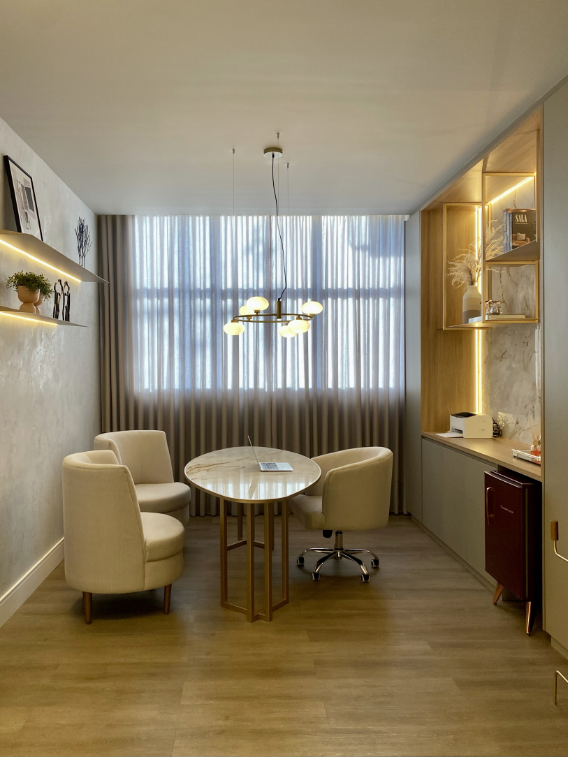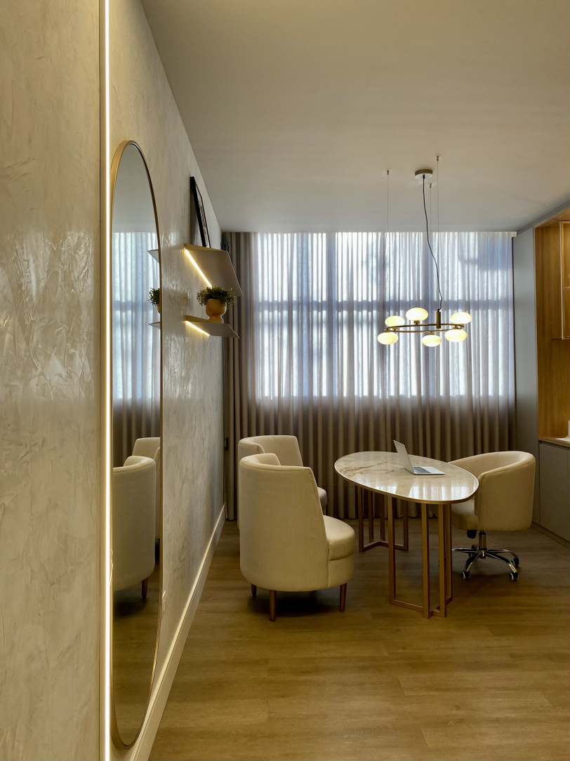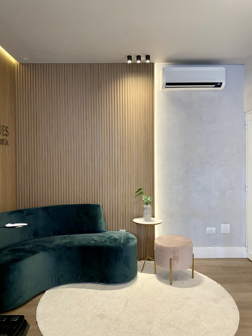 Toda a escolha dos materiais foi pensada cuidadosamente para que este espaço se tornasse muito mais que um consultório, um local para se sintir acolhido.
