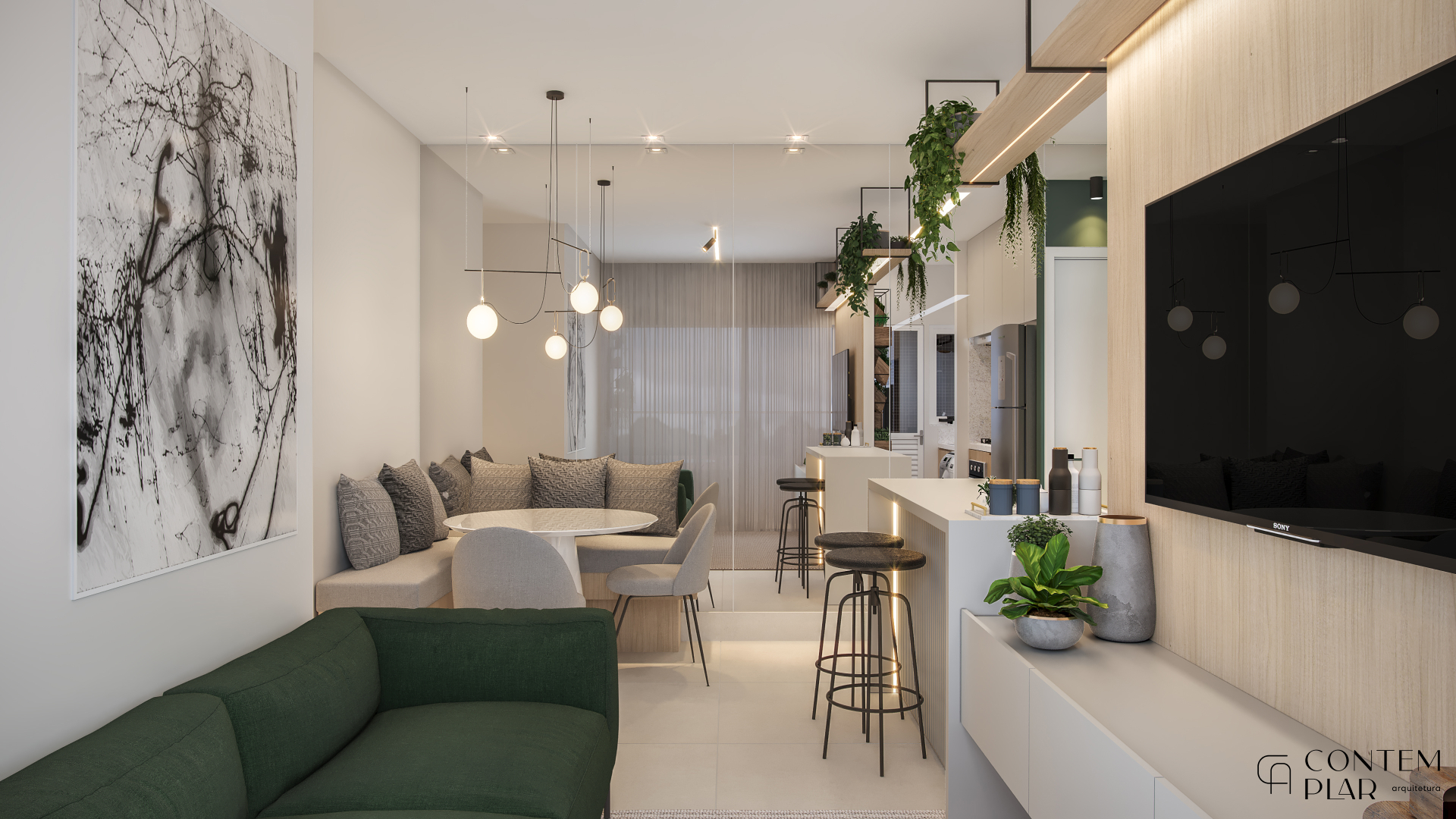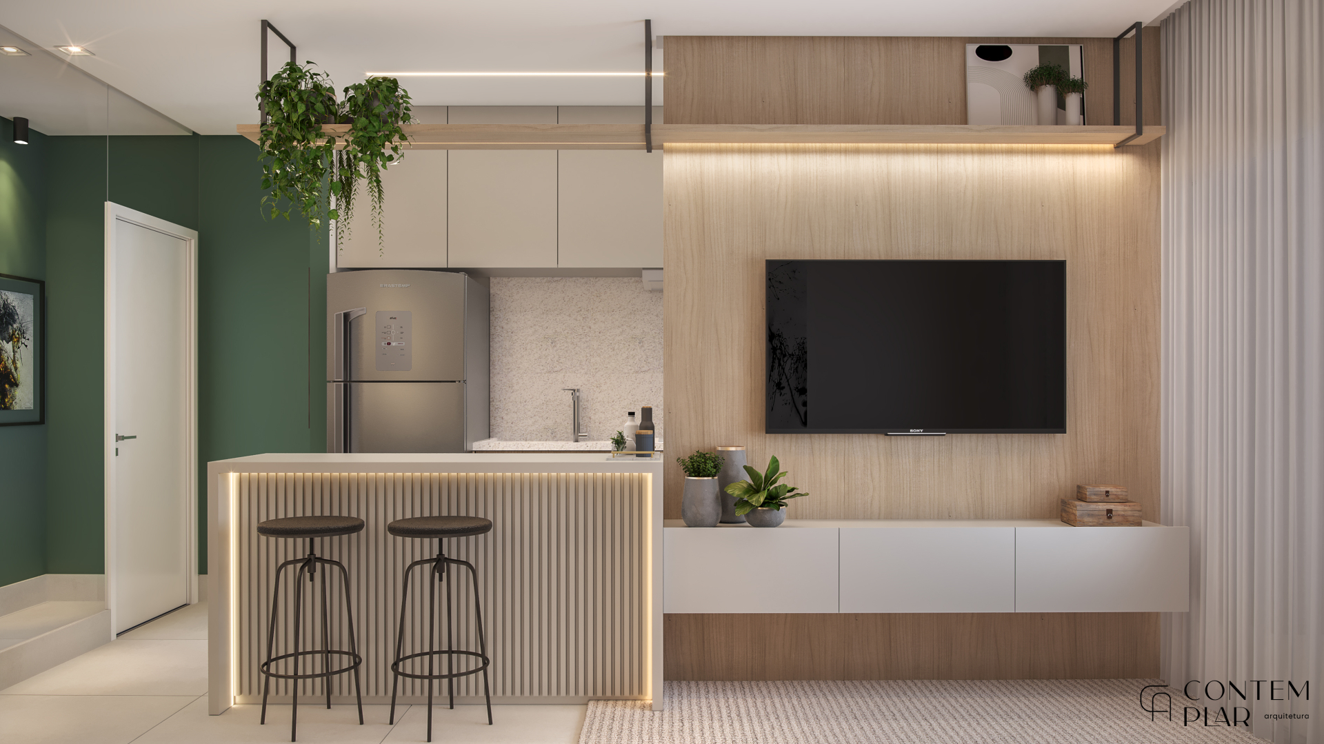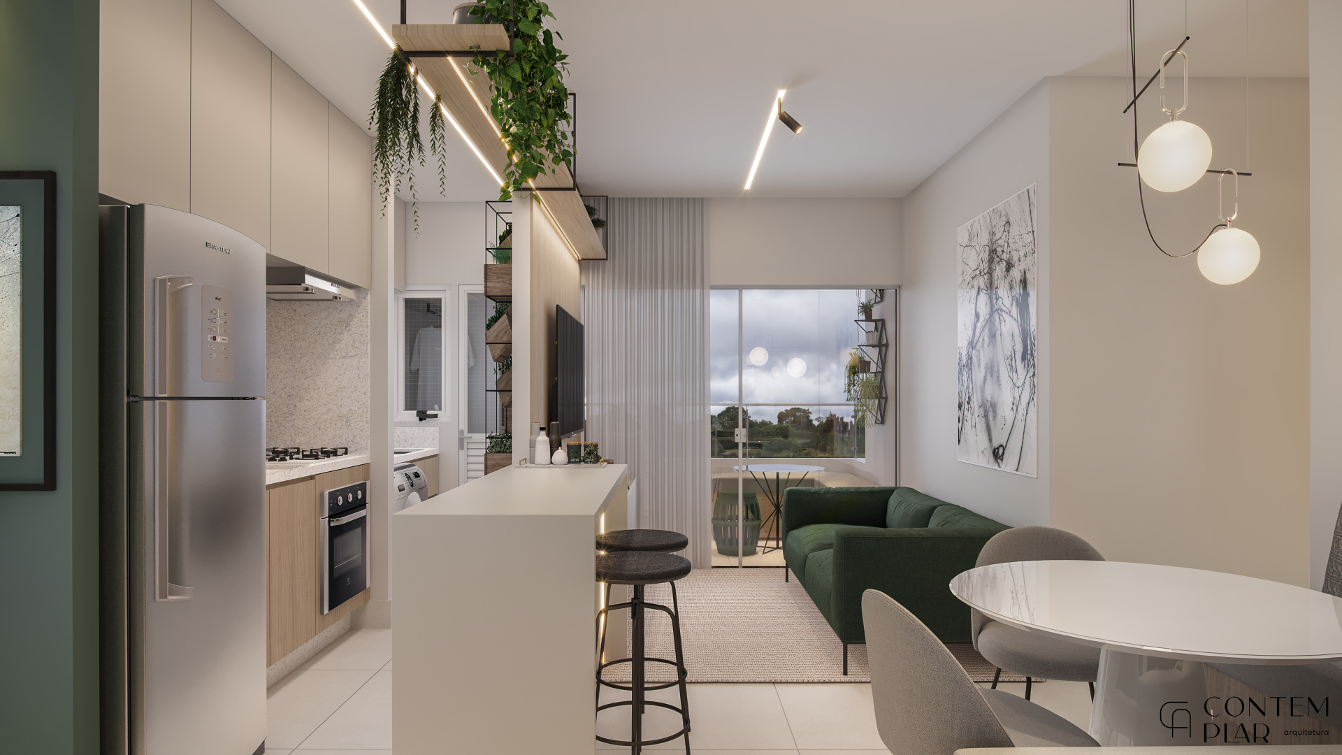 Apartamento compacto de 60m² mas extramente confortavel e funcional, tudo sem perder o estilo e aproveitando da melhor maneira possível cada cantinho. Na hora de projetar um ambiente pequeno cada centímetro é importante e para otimizar o espaço projetamos para o quarto das meninas uma opção de beliche com mesinha para estudos em baixo. Já na suíte do casal, priorizamos conseguir o máximo de espaço para armários já que o ambiente é bem reduzido, além de utilizarmos tons mais claros e espelhos para a sensação de amplitude.