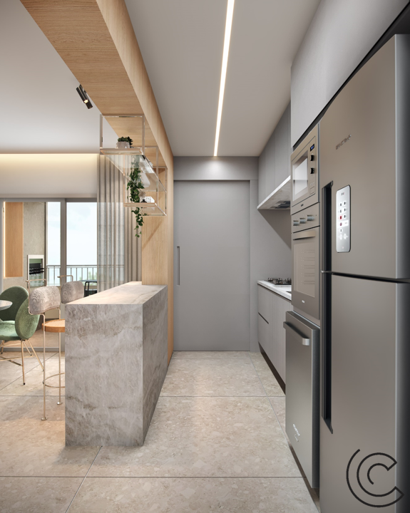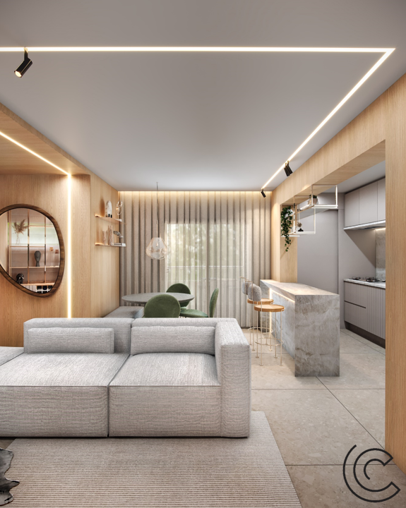 Apto Life • Ambientes integrados potencializando através da arquitetura o convívio entre as pessoas.
